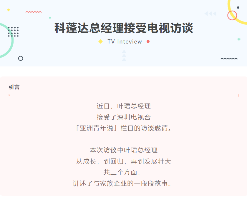 科蓬達葉珺總經理接受「亞洲青年說」欄目采訪