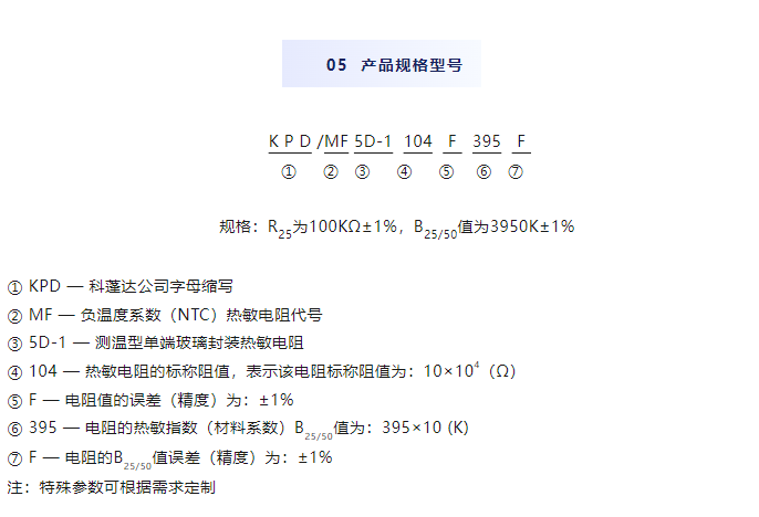 KPD產(chǎn)品系列04—MF5D單端玻封NTC熱敏電阻