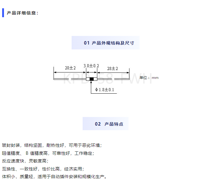 KPD產(chǎn)品系列02—MF58玻封NTC熱敏電阻
